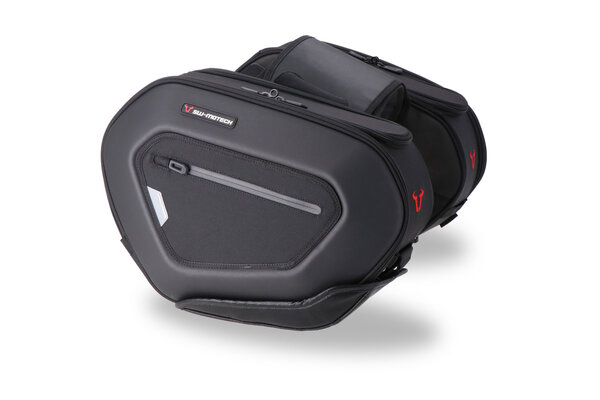 The aerodynamically optimized rear bag, 20 l from BMW Motorrad is perfectly adapted to the racing design of the machine. It can be precisely mounted on the passenger seat without special brackets and stays securely in place thanks to its anti-slip coating. Beneath the durable polyester outer material, there are two side zipper outer pockets for small items as well as a large main compartment with a waterproof, removable inner bag. The bottom, side walls, and lid are reinforced, keeping the bag absolutely shape-stable even when empty.
