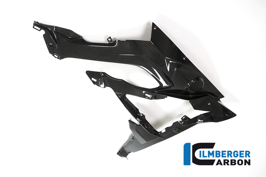 Los enfriadores de agua carenado de soporte / placa en carbono para el S 1000 XR reemplaza el dispositivo original usando los puntos de fijación originales. El panel lateral pintada de la XR 1000 S permanece en el vehículo en este componente en el original (o de carbono de nuestra casa). Los componentes sin pintar de plástico (portadores de placa, la cubierta del lado del tanque, enfriadores de agua de la cubierta) es este elegante y complejo de fibra de carbono parte ersetzt.Im atención se centra en la reducción de peso (por lo general un ahorro de aproximadamente 70% en comparación con el componente original) y una mayor rigidez. La parte de carbono es según las últimas directrices en el autoclave en su totalidad de material preimpregnado (ver FAQ) de material y en el paso siguiente, como de costumbre con nosotros, cubierta para la protección contra influencias del medio ambiente con un recubrimiento de plástico transparente. Este revestimiento de plástico supera el recubrimiento de barniz transparente usual en la protección, resistencia al rayado y resistencia enorme. Pero no sólo es técnicamente capaz de anotar el recubrimiento, pero también pone de relieve el efecto tridimensional de la estructura de carbono aún más. Para más características y detalles de la producción de nuestros Carbonparts nuestra página web bajo la pestaña calidad.