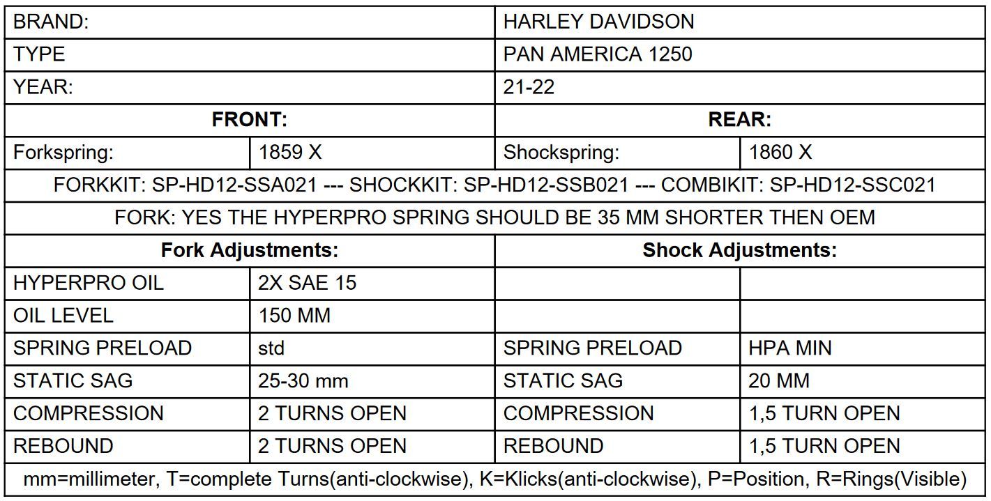 Información sobre el producto "Muelles progresivos para horquilla y amortiguador para Harley Davidson 1250 Pan America desde 2021 recambio"