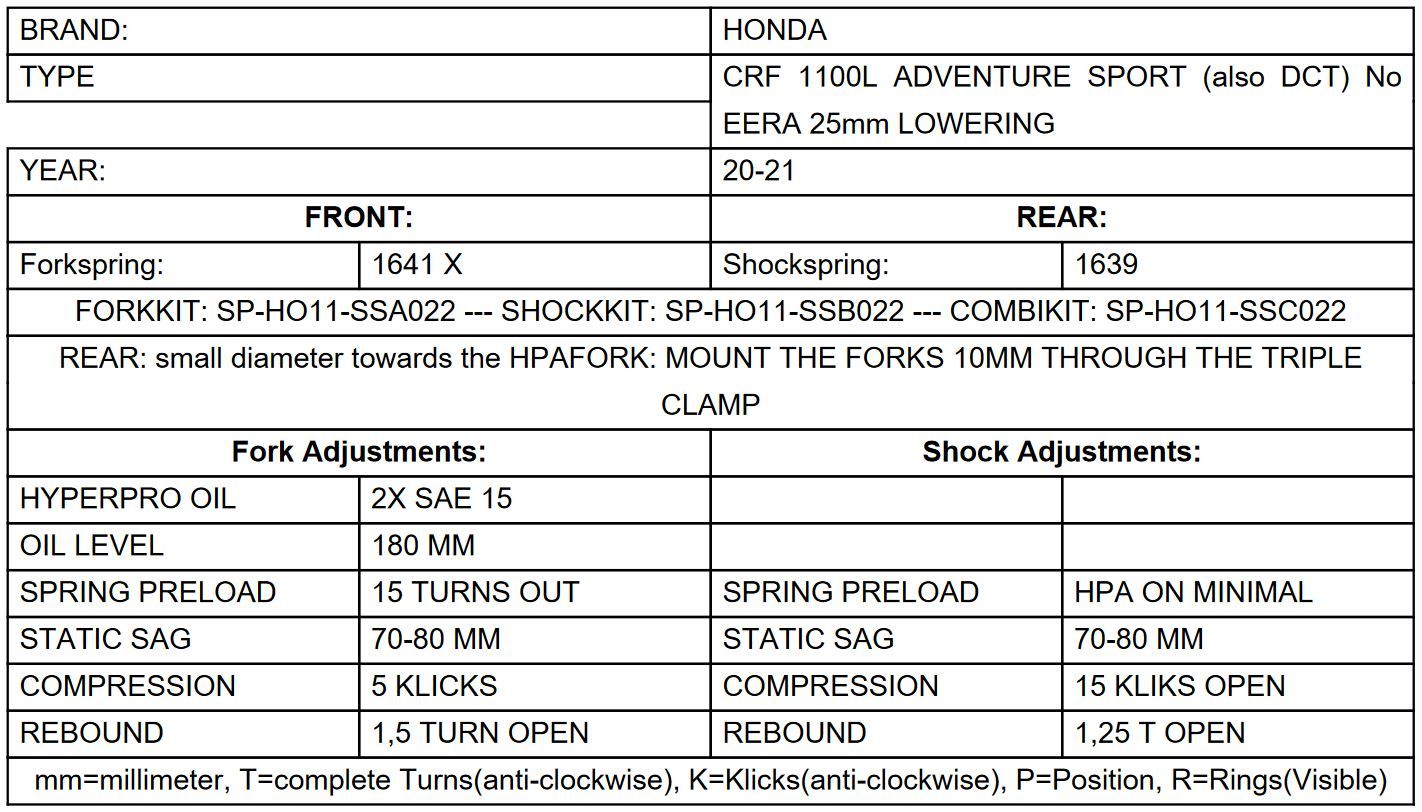 Información sobre el producto "Muelles de horquilla progresivos para Honda CRF1100L Adventure Sports sin EERA 2020-21 rebaje de -25mm"