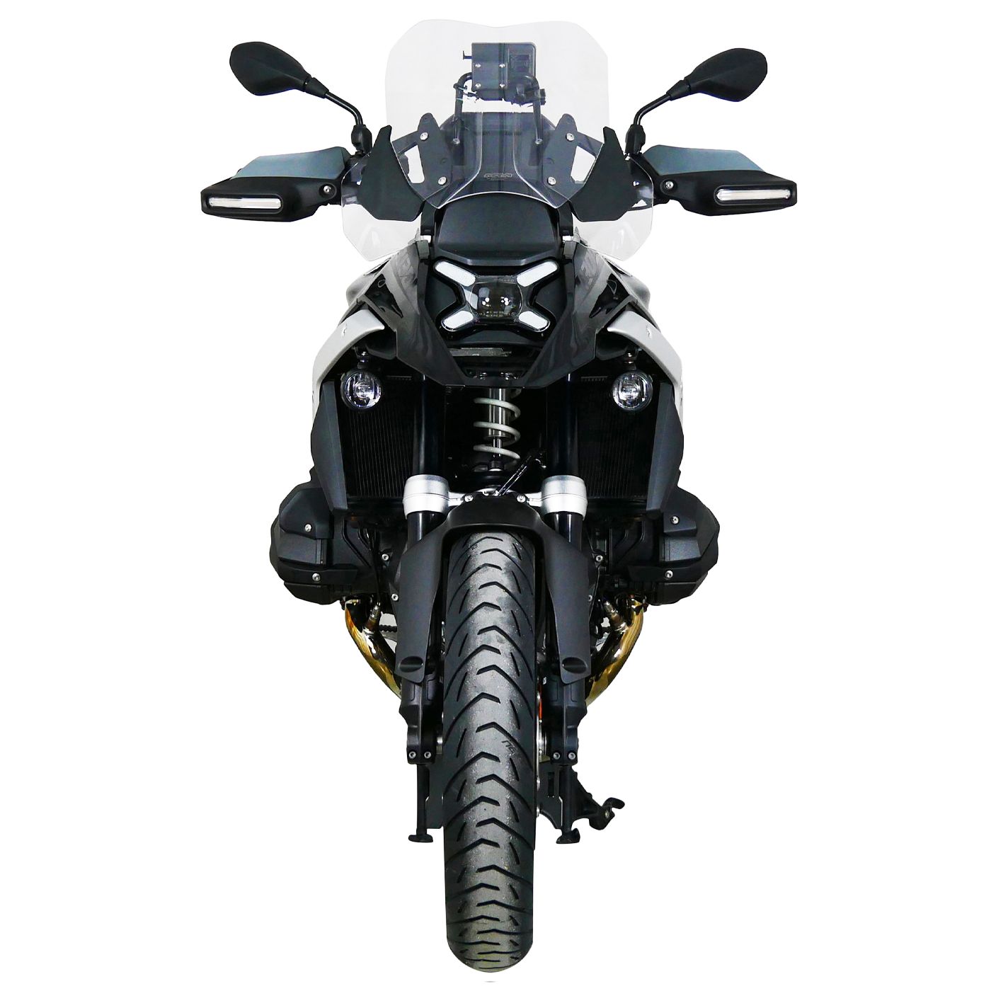 ¡La pantalla deportiva (SPM) de 34 cm de MRA tiene una fuerte presencia! Le da a la R1300GS una apariencia más deportiva. El corte y la forma de la pantalla capturan la X en el faro de la BMW y reflejan el carácter moderno. Con unos pocos movimientos, se puede cambiar, lo que permite una mejor visibilidad para terrenos rocosos. La pantalla es fácil de cambiar y montar, y es compatible con modelos con y sin sistema de radar. También se puede utilizar sin problemas en modelos con y sin ajuste eléctrico de la pantalla y se adapta igualmente en combinación con el paquete Enduro.