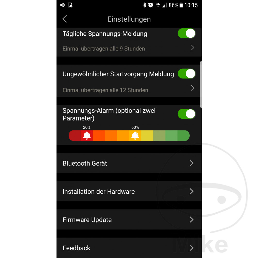 Après un simple raccordement à la batterie à l'aide de cosses à œillet et le téléchargement de la nouvelle application Android ou Apple, la valeur de tension actuelle peut être consultée.
