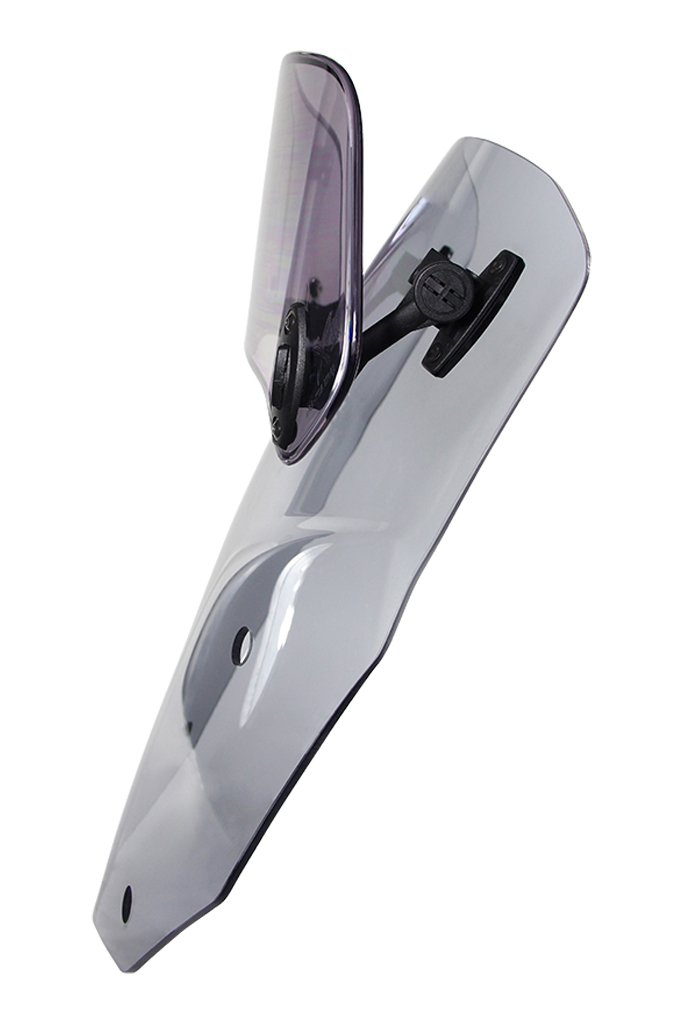 Il parabrezza X-creen è composto da una base e dallo spoiler X-creen regolabile in molteplici posizioni. La fornitura include due versioni articolate: giunto semplice "S" e giunto doppio "D", che possono essere montati a scelta. La variante "S" è consigliata per i clienti che si trovano bene con l'altezza del parabrezza e desiderano solo regolare l'angolo dello spoiler. I clienti per i quali la variante "S" è troppo alta o troppo bassa possono utilizzare la variante "D" per regolare l'altezza dello spoiler di 110 mm e, allo stesso tempo, regolare l'angolo dello spoiler, indipendentemente dall'altezza, così come la distanza dalla base. In questo modo, X-Creen può essere ottimizzato in base alle esigenze individuali del pilota.