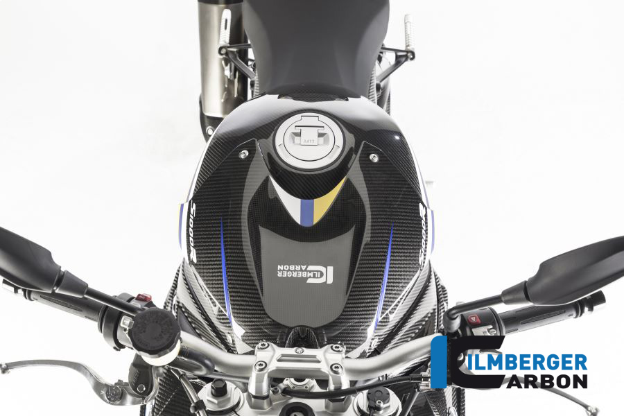 Il coperchio del serbatoio superiore in carbonio per BMW S 1000 R (2014-corrente) / S 1000 RR stradale (dal 2015) sostituisce la parte originale utilizzando i punti di fissaggio originali. Questo eye-catcher è un must in aggiunta ai pannelli laterali del serbatoio in carbonio qualsiasi S 1000 R!