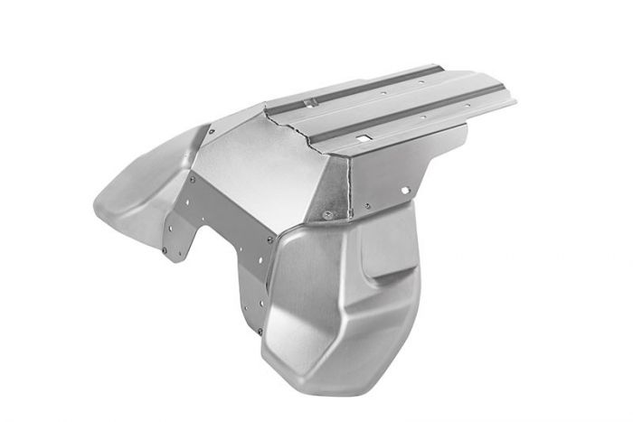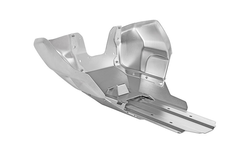 Die spezielle Struktur der verlängerten Bodenplatte sorgt zusammen mit dem hoch festen Material für maximale Steifigkeit bis zum Katalysator. Selbst bei derbem Geländeeinsatz schützt sie Motor und Abgasanlage gleichermaßen. Flache Anlaufschrägen erleichtern das Überwinden von Hindernissen jedweder Art, egal ob Baumstamm oder Bordsteinkante. Für eine gleichbleibende Qualität sorgen professionelle Roboter-Verschweißungen auf hochwertigen Werkzeugen.