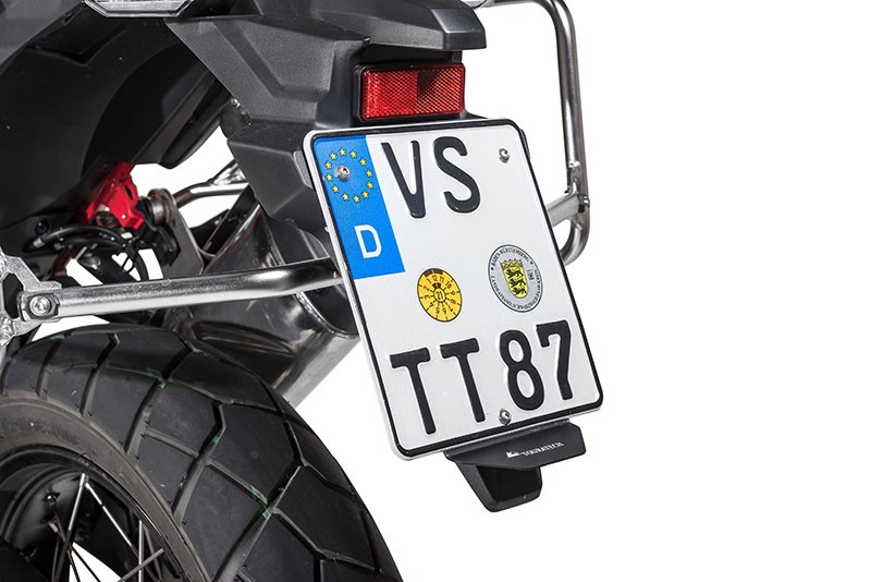 Der Touratech Spritzschutz wurde speziell an die Kontur des Kennzeichenträgers angepasst. Optisch optimal in das Fahrzeugdesign integriert, passt es auch für kleinere Kennzeichen.